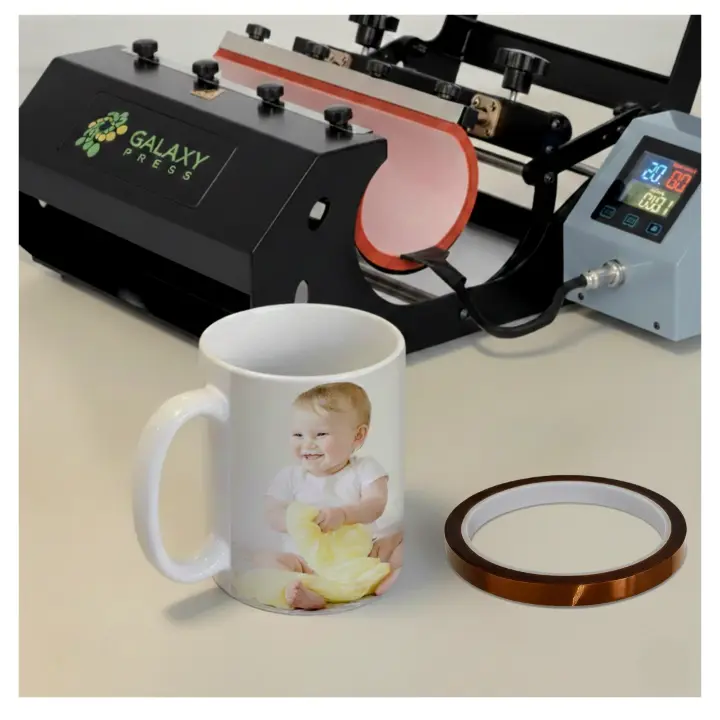 Colocar el papel correctamente sobre la taza y fijarlo con cinta térmica
